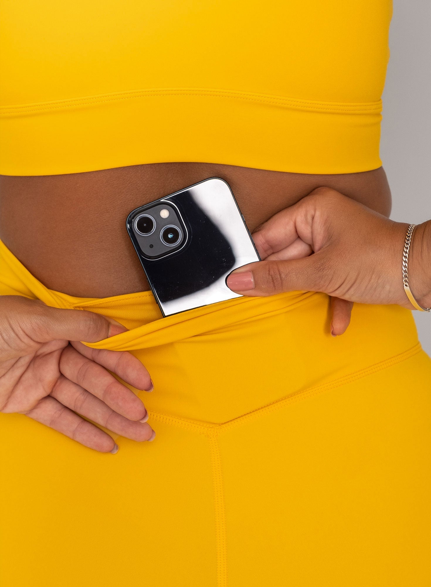 • Hidden pocket in the back waistline for phone or keys
