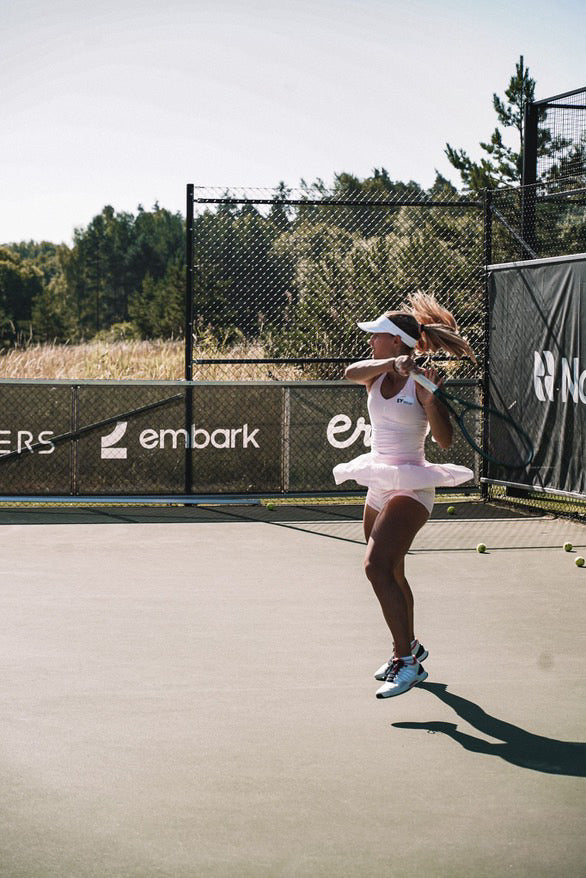 Women's Court Pleated Skirt is designed for racket sport and is a must-have in your training wardrobe. The skirt is made of a soft and thin fabric and has a pleated skirt as well as built-in shorts with ball pocket that conveniently stores tennis or padel balls during a match or training. Wear it together with the Women's Sports Bra during a sweaty workout. We promise, it's an unbeatable combination and the perfect look.