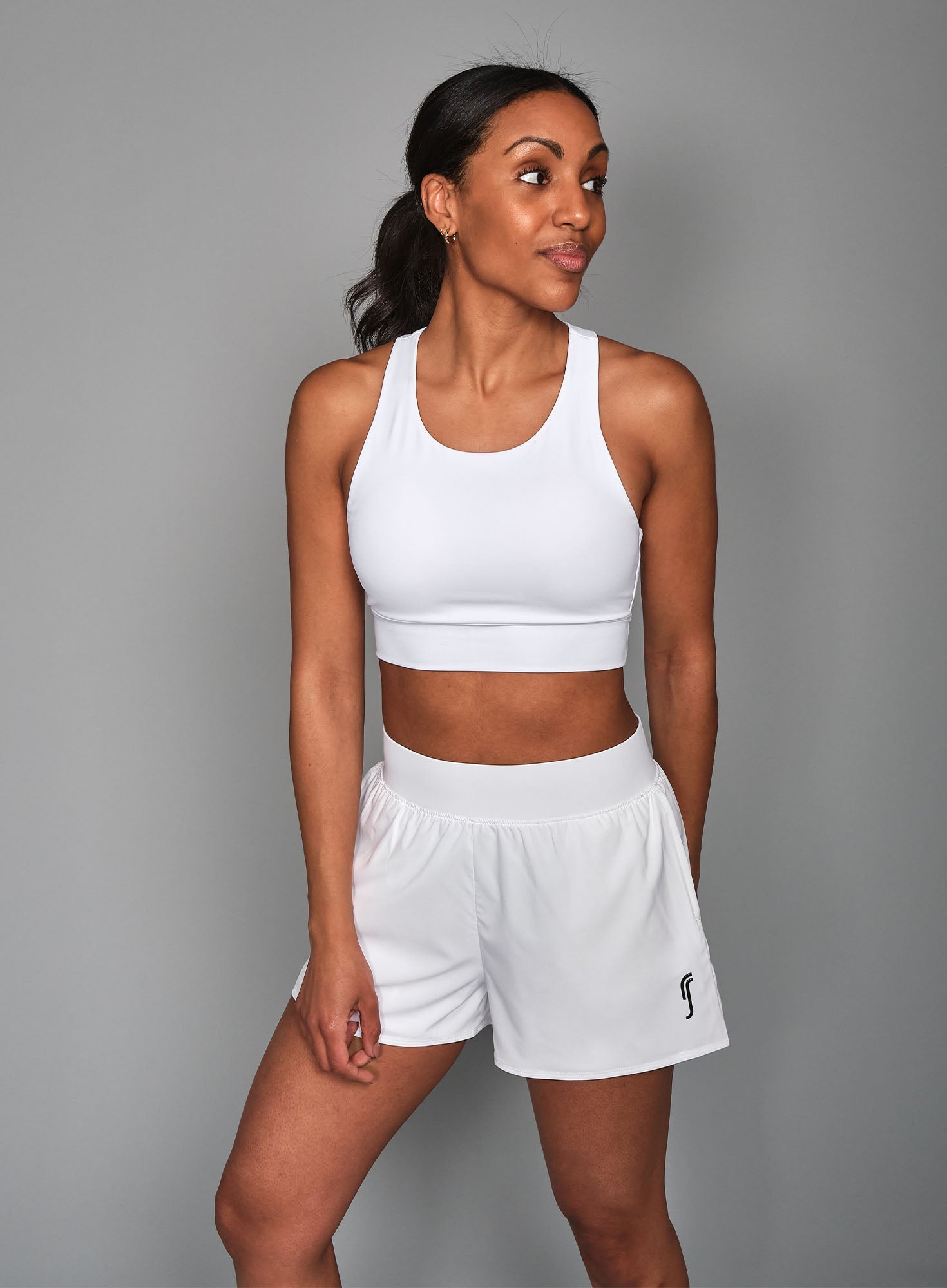 Training shorts in 2-in-1 model. The shorts have a wide, elastic waistband and fitted inner shorts for a comfortable fit. On either side of the inner shorts are pockets for tennis and padel balls. The shorts are perfect for the tennis or padel court as well as the gym.