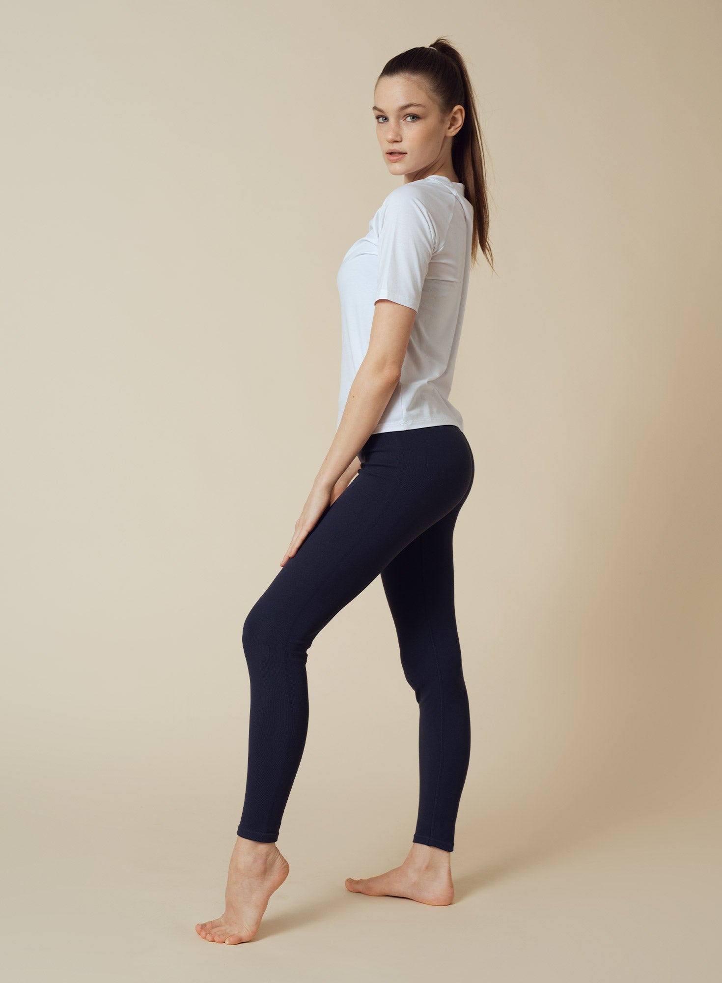 Mjuka och följsamma seamless tights med en ”second skin feeling”. Dessa är stickade i en polyamid- och elastanblandning och har svalkande och fuktavvisande egenskaper. Modellen har hellånga ben med en hög ribbstickad elastisk midja för bästa support. Bär tillsammans med Seamless Yoga Bra för en komplett look.