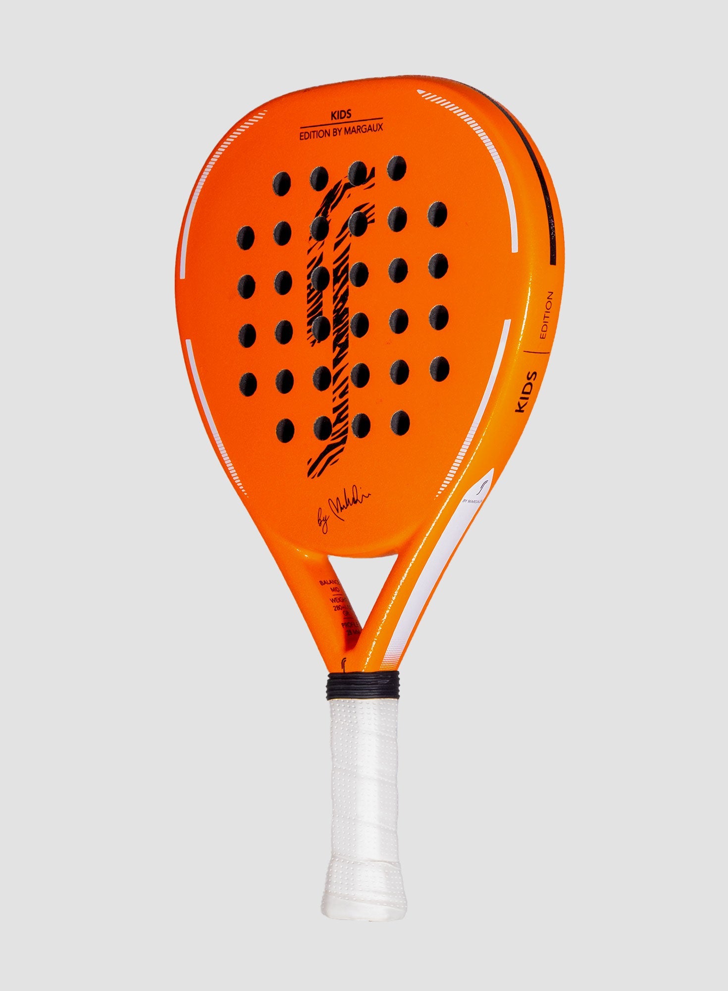 Tillsammans med Margaux Dietz har vi utvecklat den perfekta första racketen att börja padelkarriären med. En litet och lätt racket för barn mellan 4 och 8 år. Racketens yta är sandigt och har en låg balans för att minimera påverkan på barnets armar och axlar.